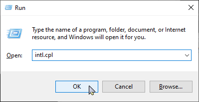 1. Hit Windows Key + R to open up the Run dialogue, type intl.cpl then click "OK"