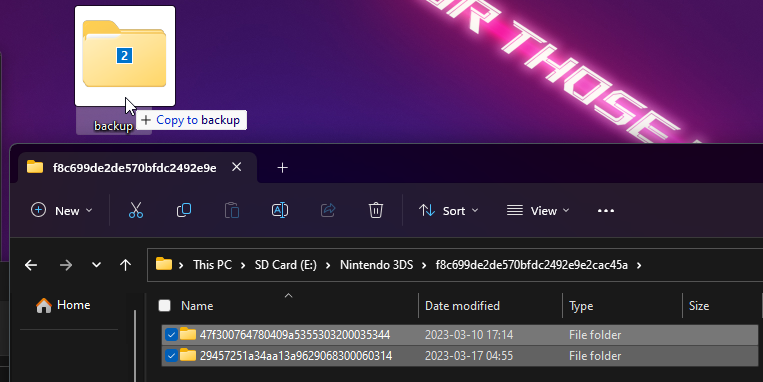 1. Rename the Nintendo 3DS folder to BACKUP_Nintendo 3DS