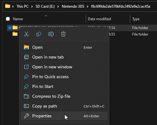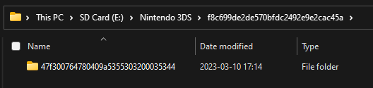 Now, put your SD card into your 3DS and turn it on. If your data is still there, you deleted the right folder and have now determined your correct ID1. If everything has disappeared, go back into the backup folder that you made earlier and try the other folder.
